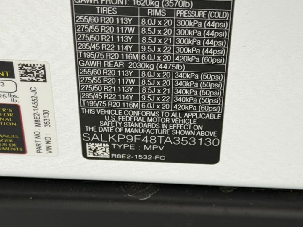REAR SEAT CONVENIENCE PACK, RANGE ROVER HANDOVER PACK, OSTUNI PEARL WHITE PREMIUM METALLIC, INTERIOR PROTECTION PACK, HEAD-UP DISPLAY, EMERGENCY PACK, COMFORT PACK -inc: Cabin Air Purification Pro, 4-Zone Climate Control, Front Center Console Refrigerator Compartment, Twin-Blade Sunvisors w/Illuminated Vanity Mirrors, BLACK CONTRAST ROOF, 22" FULL SIZE SPARE WHEEL, Wireless Phone Connectivity.