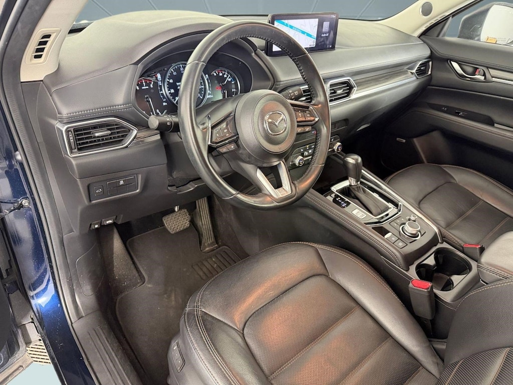 Safety is a top priority in the Mazda CX-5, equipped with i-Activsense driver-assist technologies such as blind spot monitoring, rear cross traffic alert, lane departure warning, adaptive cruise control, and smart brake support. These features work together to provide added confidence and peace of mind on every drive.